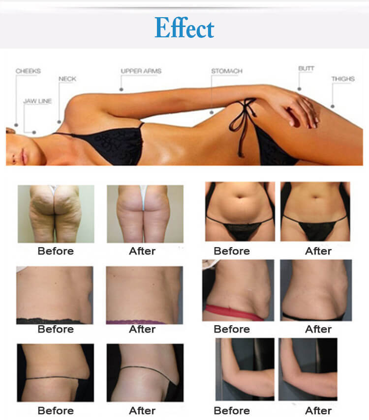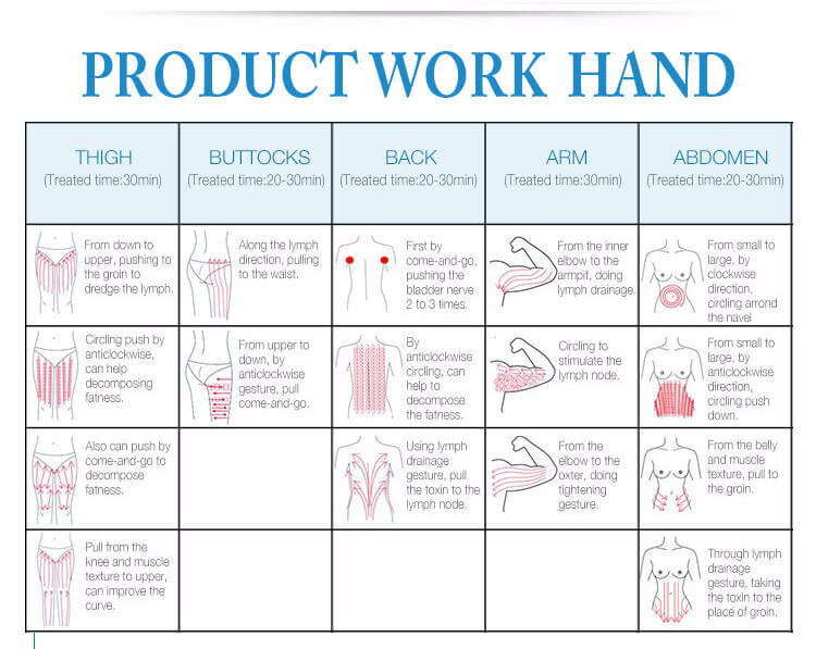 Firming the arms, legs, thighs, buttocks, waist, back, abdominal muscles and reshape the body figure *Improve the orange peel like fatty tissues of different serious levels *With the effects of soothing, decompression and pain relief (such as joint pain, sciatica),promote the regular mechanical aerobic exercise of skin tissue, rapidly relieve stress and remove fatigue. *Firming, lifting and compact the skin and mould the face shape circulate and activate cells, promote metabolism and so that 100% more collagen and elastic fibers may be gained for improving the facial and body skin
